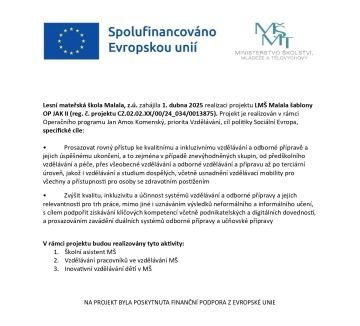 Pozor, zápis na školní rok 2026/27 se nově podle § 34 odstavce 2) Školského zákona koná v období od 15. 3. do 15. 4. 2026. V Malale je zápis stanoven na 1. dubna 2026.